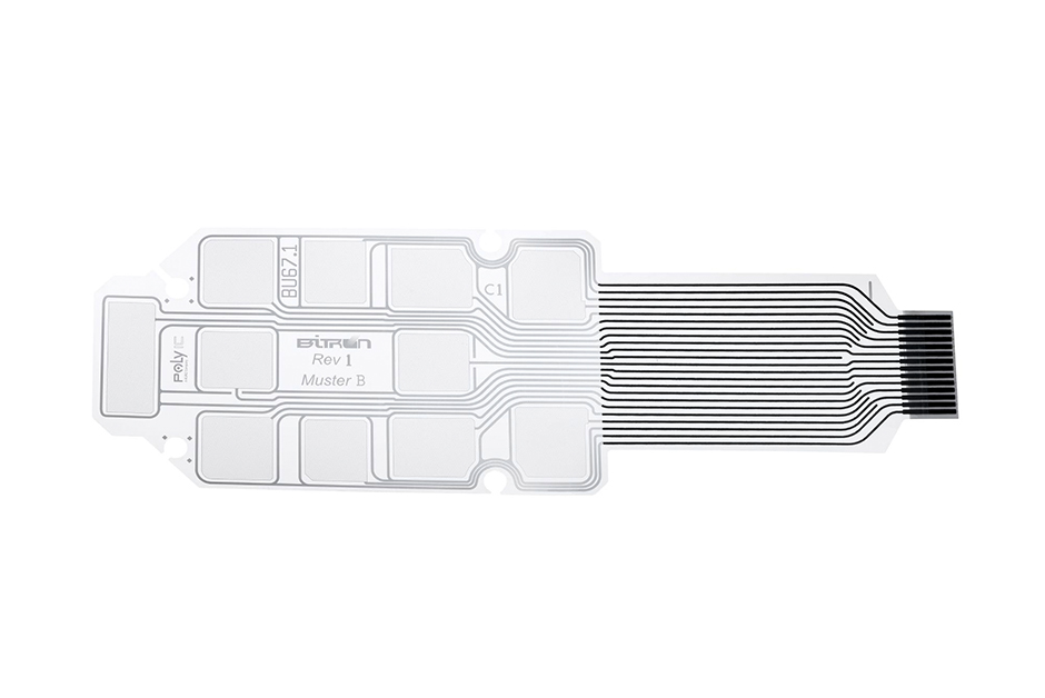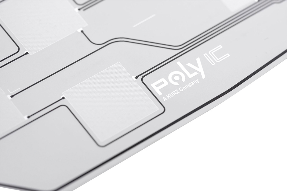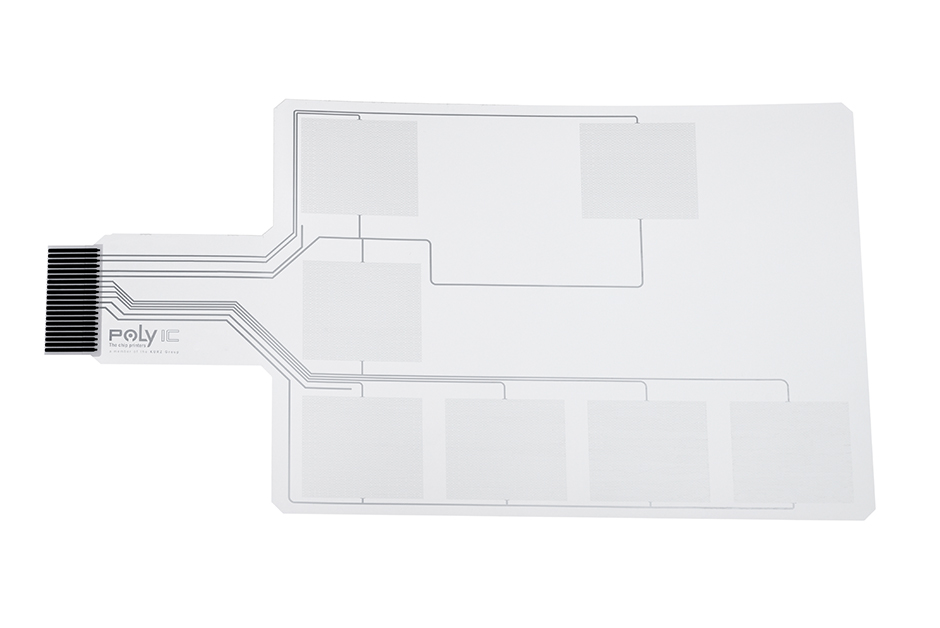 A solution with high efficiency: With PolyTC® Silver Ink, a binding agent with silver particles is applied to the transparent PET carrier and enables precise positioning of conductive surfaces. The solution not only impresses with the variety of layout options, but also with durability thanks to a printed protective layer. PolyTC® Silver Ink is ideally suited for the implementation of backlit symbols for touch keys and, in combination with a diffuser layer, enables targeted light distribution and backlighting of the icons. The solution is also cost-effective in production thanks to efficient processes with few production steps.