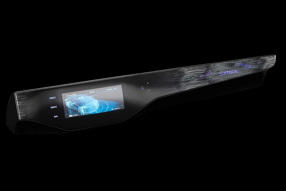 The automotive interior of the future will feature connected surfaces without gaps or spaces, because buttons and switches will have become obsolete. Ever more supporting functions must be integrated, while remaining clearly arranged for the driver. Organically swept designs help with this and support intuitive operation in vehicle interiors. Dead-front designs do not reveal what’s under the surface until touched. The aim is to link innovative functionality with unusually large decorative surfaces and sophisticated design. The concept control panel Fading Lines, winner of the Red Dot Award 2020, illustrates a new way to efficiently and economically solve this challenge.