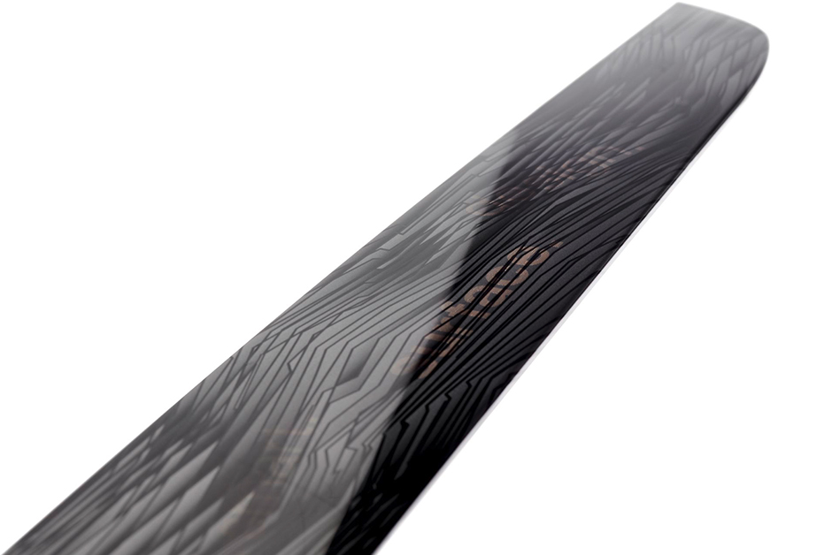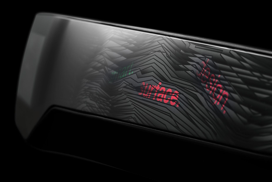 To develop a futuristic HMI (Human Machine Interface) concept panel that fathoms the technically feasible: Fading Lines is an unusually large, almost one-meter long panel with strikingly natural-looking decoration that flows into a high-gloss black piano surface.The control area is organically swept, thereby providing the driver with intuitive support. The homogeneous panel holds a host of functional and lighting elements. The main control element is the touchscreen with multitouch function and touch buttons. Backlighting reveals control icons and ambient light effects, which are controlled with the touch control panel. Without activated backlighting, a homogeneous design is visible. Sustainable design is achieved – the process is efficient and also supports the use of recyclates as an alternative to new material. No difference can be perceived between recyclate or new material in terms of aesthetics and technical sophistication.